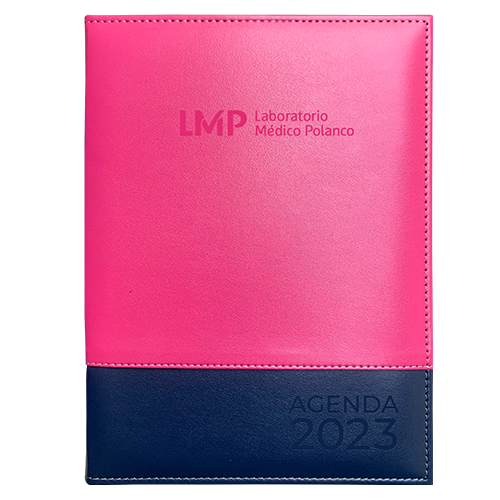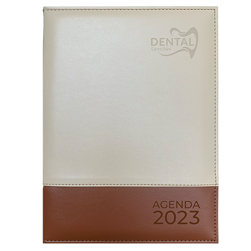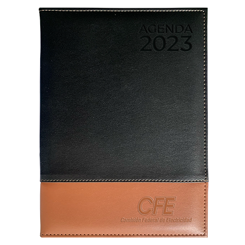 Funda: Curpiel Softy liso con aplicación en el mismo material, fabricada con cartón importado e interior en forro nylon, solapa recta con tarjetero y listón separador (popotillo).