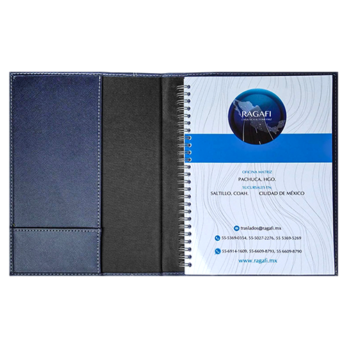 Funda: Curpiel Nixi con o sin costura vertical, fabricada con cartón importado e interior en forro nylon, solapa recta con tarjetero y listón separador (popotillo).