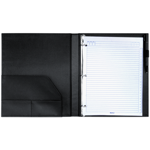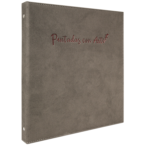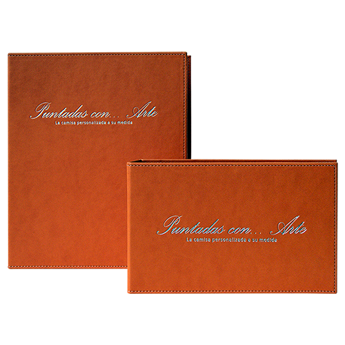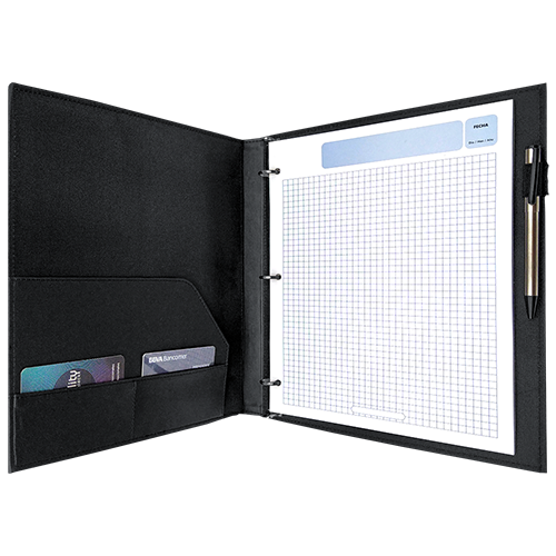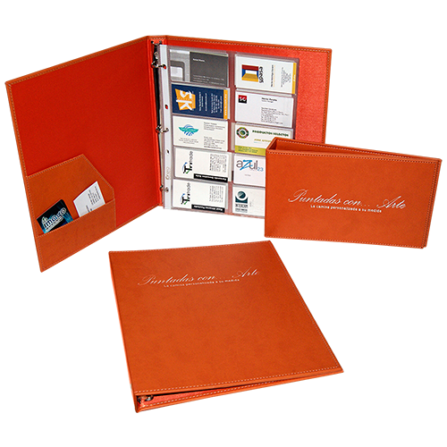 Descripción: Cartón importado, forro nylon interior, solapa con tarjetero y herraje de argolla.