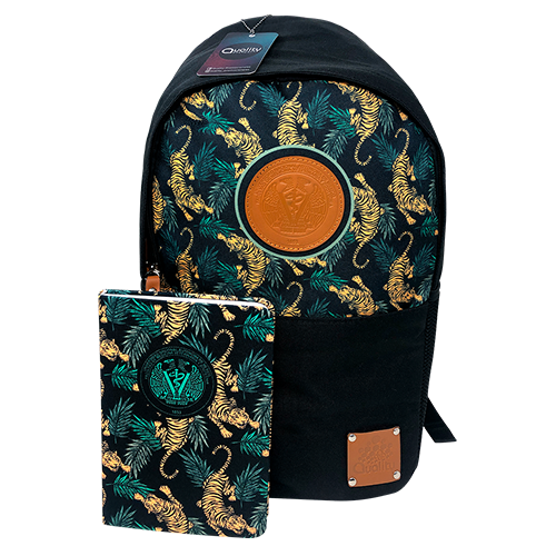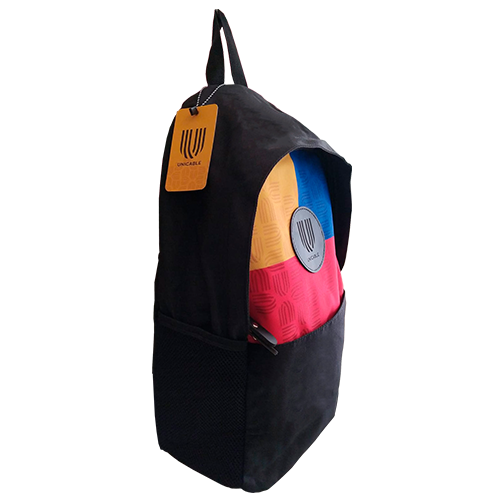 Descripción: Backpack fabricada en Semi Poliéster, con interior en forro nylon repelente con bolsillo, 2 bolsillos laterales con malla sandwich y bolsillo frontal con cierre, tirantes de hombro acojinados y ajustables, con medallón de Piel para logotipo, jaladeras y aplicaciones de Piel.
